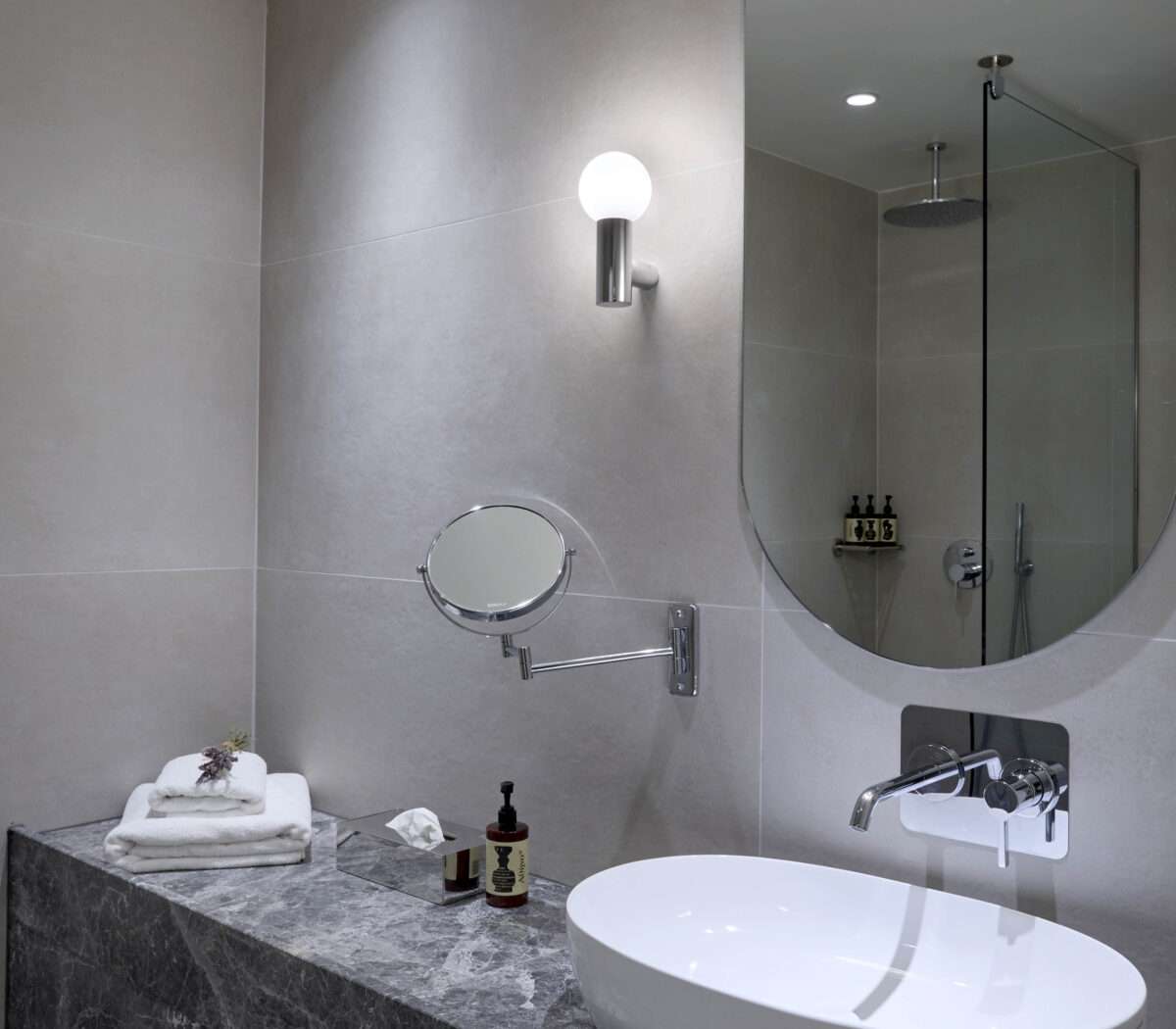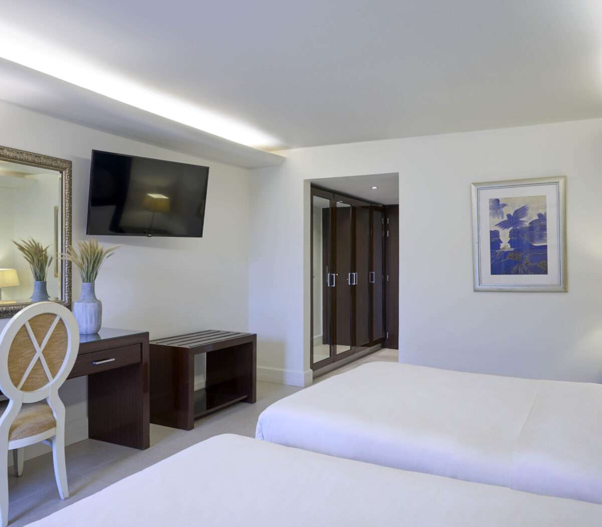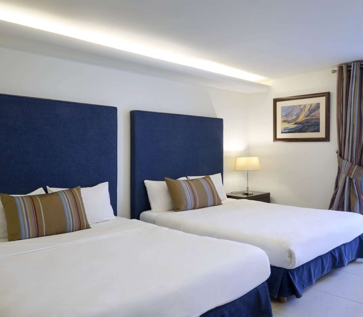 The room can comfortably accommodate up to two adults and two children or three adults, with two double beds to ensure a restful sleep.